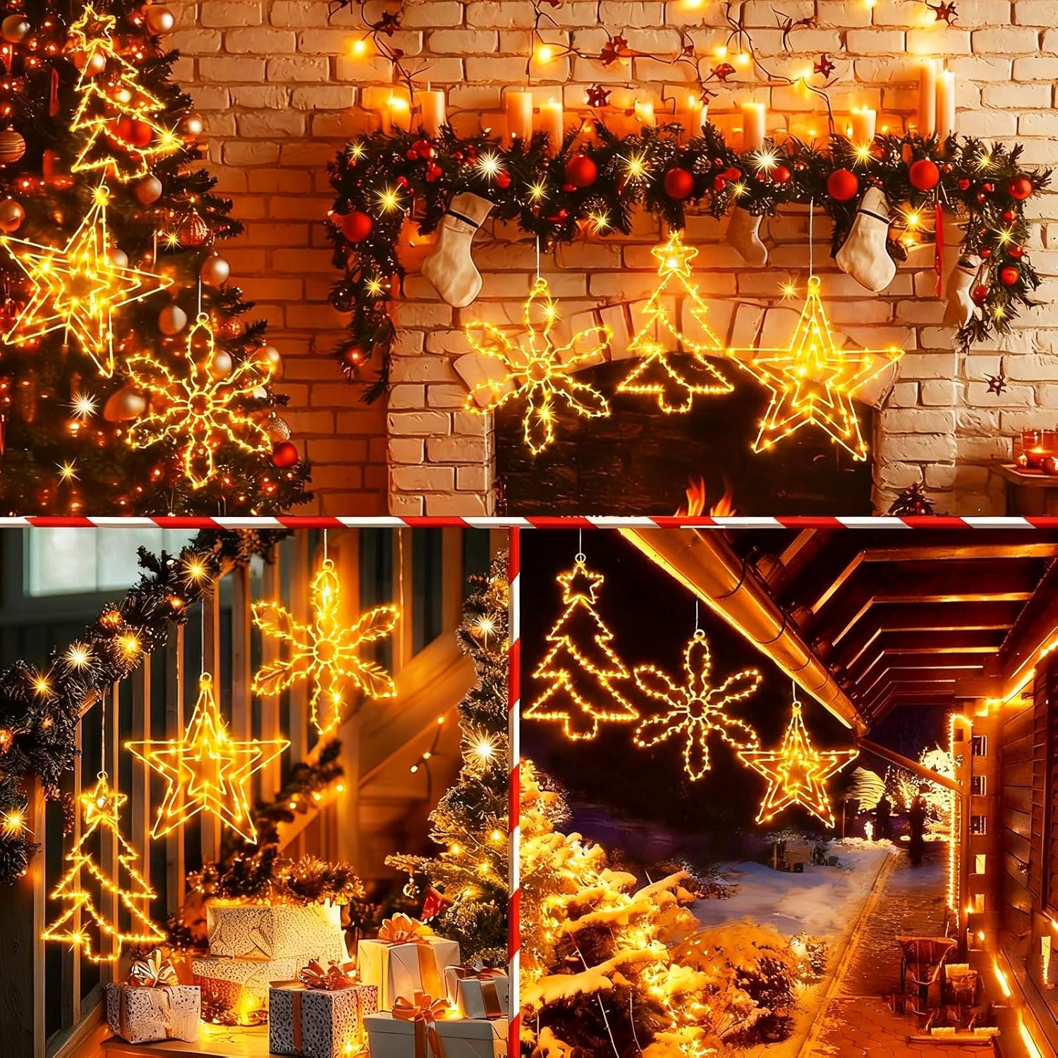 - Indoor & Outdoor Decorations - Christmas tree lights are perfect for indoor and outdoor decorations, widely used in Christmas, fireplace, hotel, holiday, etc. You can use it to decorate the Christmas tree, fireplace, pergola, windows, doors, garlands, walls, gift boxes as well