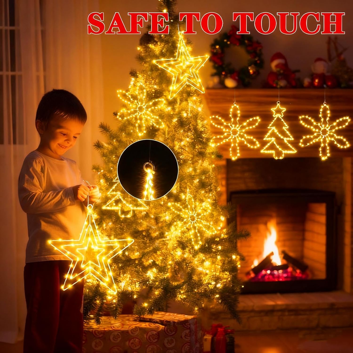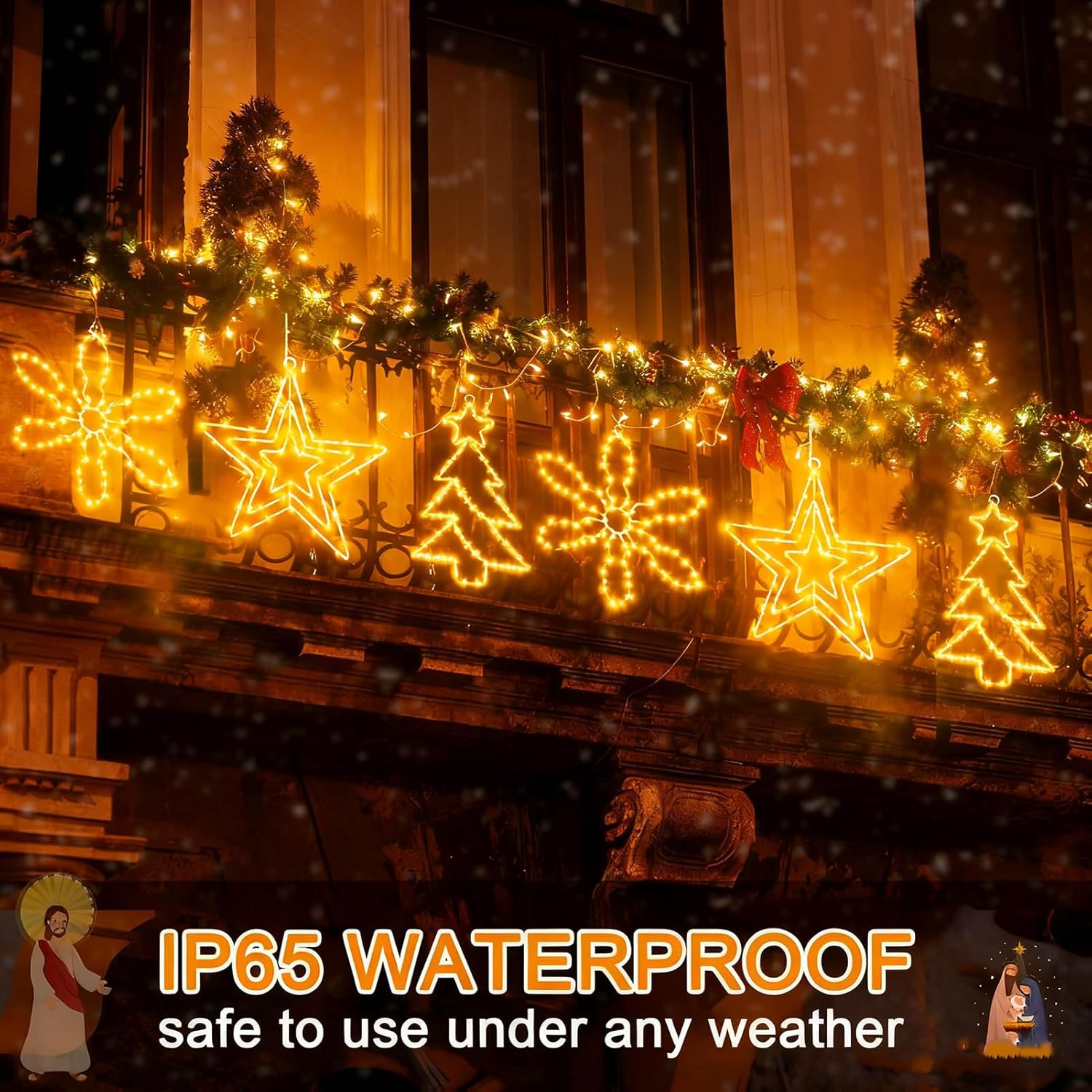 - IP65 Waterproof - The Xmas wall decorations will not overheat and is safe to touch after a long time use. The star window light and battery box are IP65 waterproof and can be used even on snowy and rainy days! Hook design, perfect for hanging on bedroom windowsills, walls and Christmas trees
