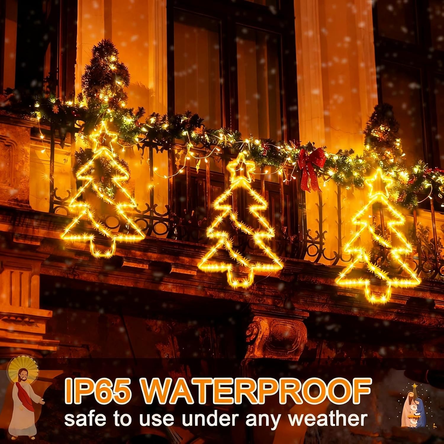 yowin Christmas Window Lights 3 Pack Large Metal Xmas Star Tree Snowflake Lights Battery Operated with Timer, Window Light IP65 Waterproof Hanging LED Star Light for Indoor Outdoor Door Decorations