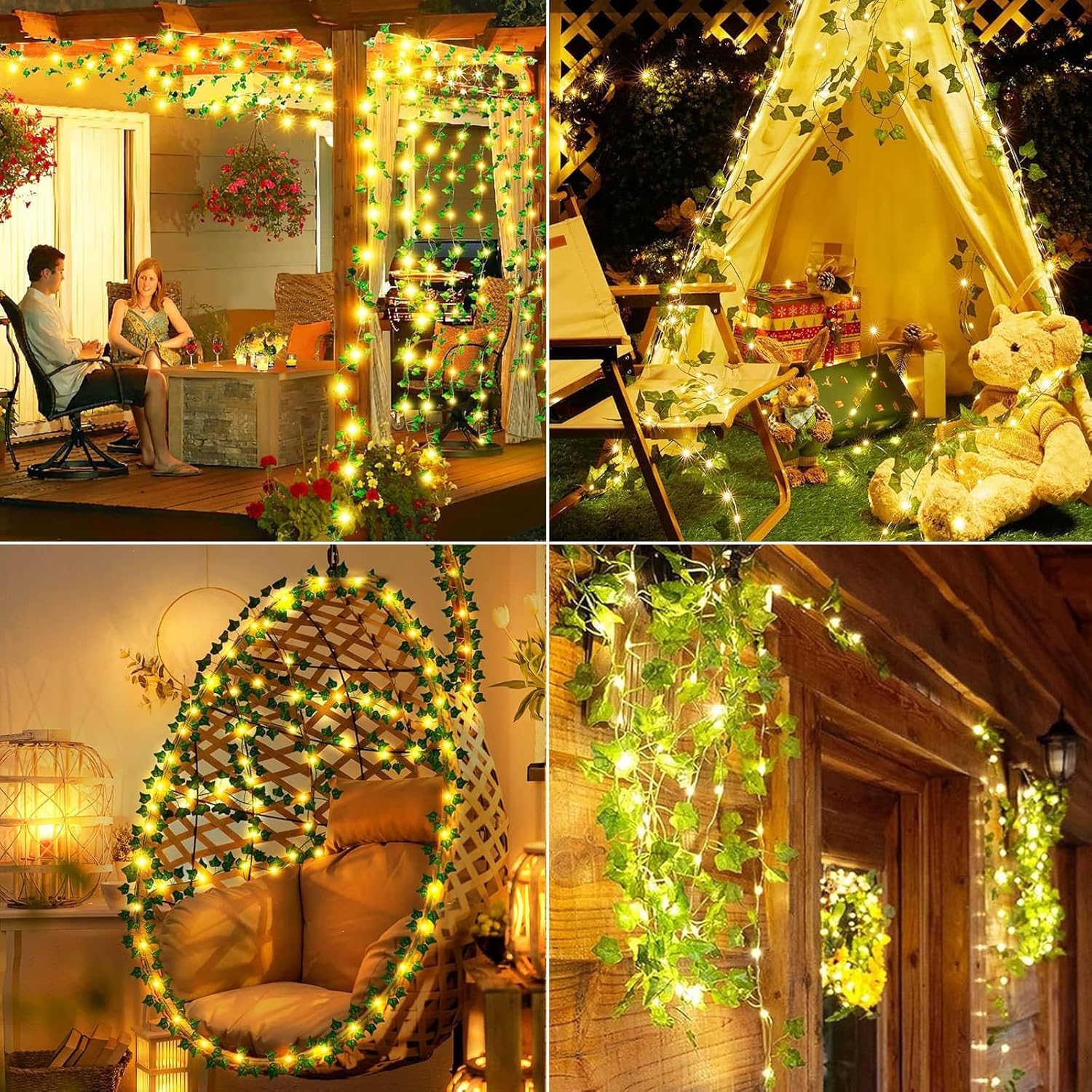 Aesthetic Decor - This artificial leaf garland is designed with copper wire, easy to wrap around wall, window, door, floor, plant. Our solar lights are perfect for garden, staircase, camping, wedding, Christmas, Halloween decorations, day and night!